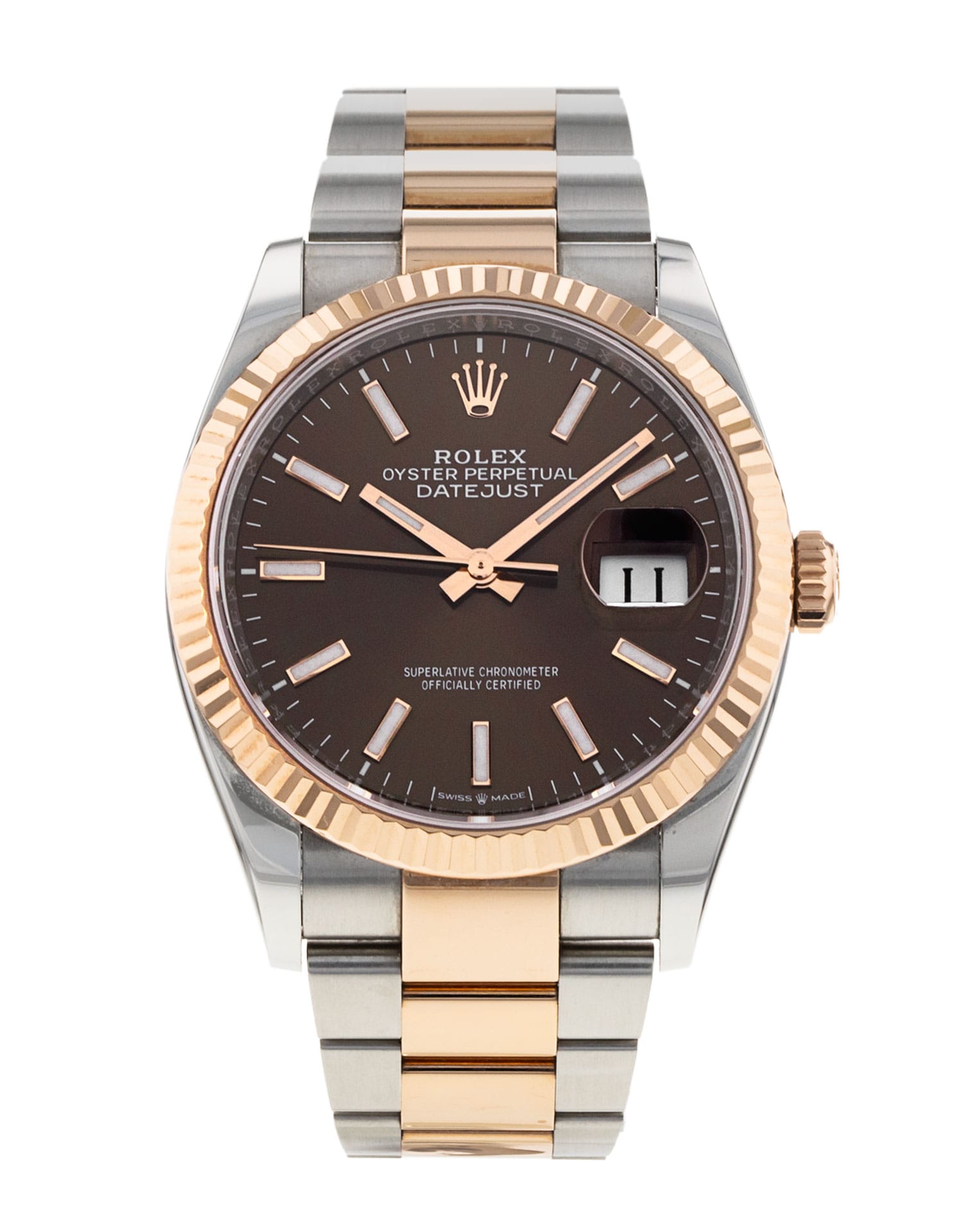 This Rolex Datejust 126231 has a chocolate baton dial and a bracelet strap. This Rolex has undergone a thorough inspection of water resistance, accuracy, functionality and condition to determine the level of reconditioning required to meet our strict standards. It has also been referenced against technical documents and manufacturer records where available to ensure authenticity and a clean history. Our watches have a 24-month warranty for your peace of mind, in conjunction with any remaining manufacturer’s warranty from new or from service. To maintain the manufacturer’s warranty on this watch, it has not been polished in our service centre.